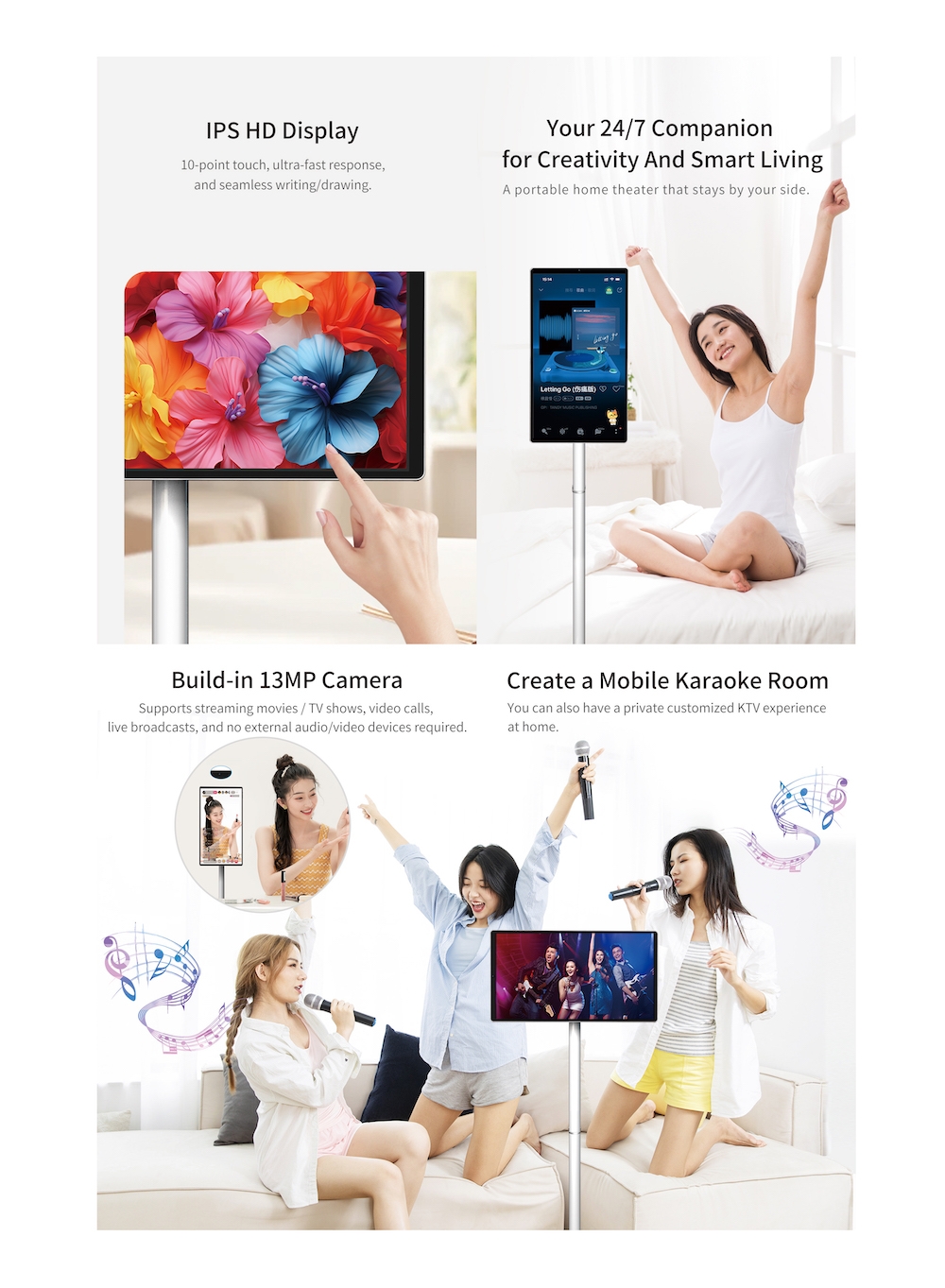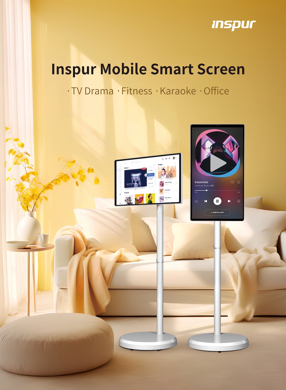 IM22 IM27-SE IM27 IM32 Inspur's mobile smart screen combines features of tablets and TVs, with added benefits of portability, mobility, and small size. Running on the Android platform, it offers excellent app compatibility, seamlessly integrating into the Android ecosystem. The screen size ranging from 21.5 to 32 inches makes it better suited for fitness, binge-watching, karaoke, cooking, meetings, media, and other needs than tablets and smartphones."