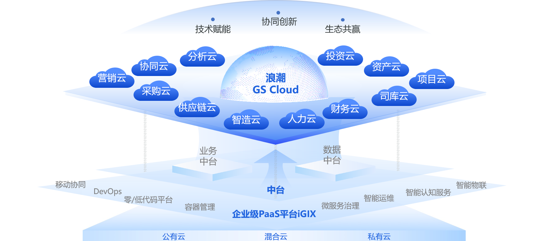 提供端到端数字化流程,实现全要素链、全价值链、全产业链连接,为员工、客户、供应商提供全新体验,构建企业协同生态体系,支撑企业业务创新和商业模式变革。