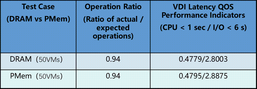 可见英特尔® 傲腾™ 数据中心级持久内存可以满足VMware VDI桌面虚拟化下的性能需求,作为VMware VDI桌面虚拟化内存扩展方案使用。
