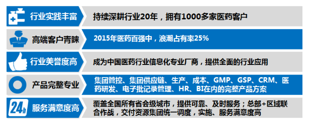 伴随医药行业发展,浪潮海岳始终以满足客户管理需求为出发点,围绕国家政策管控要求,与医药企业共同成长,积累、打造出浪潮海岳医药行业解决方案5大名片。