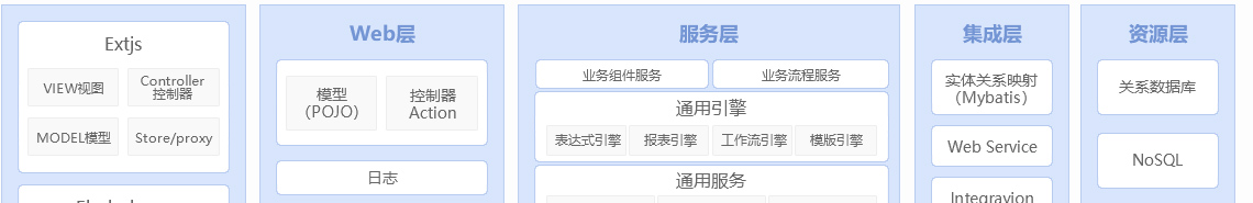 整体架构采用B/S的分层体系架构,主要包括浏览器端、web层、服务层、集成层和资源层。覆盖项目创建、设计、开发、测试、部署以及持续集成全项目周期的、企业开发平台,具备快速启动、设计、实施与交付高可用性大型企业级应用的能力。采用技术架构如下: