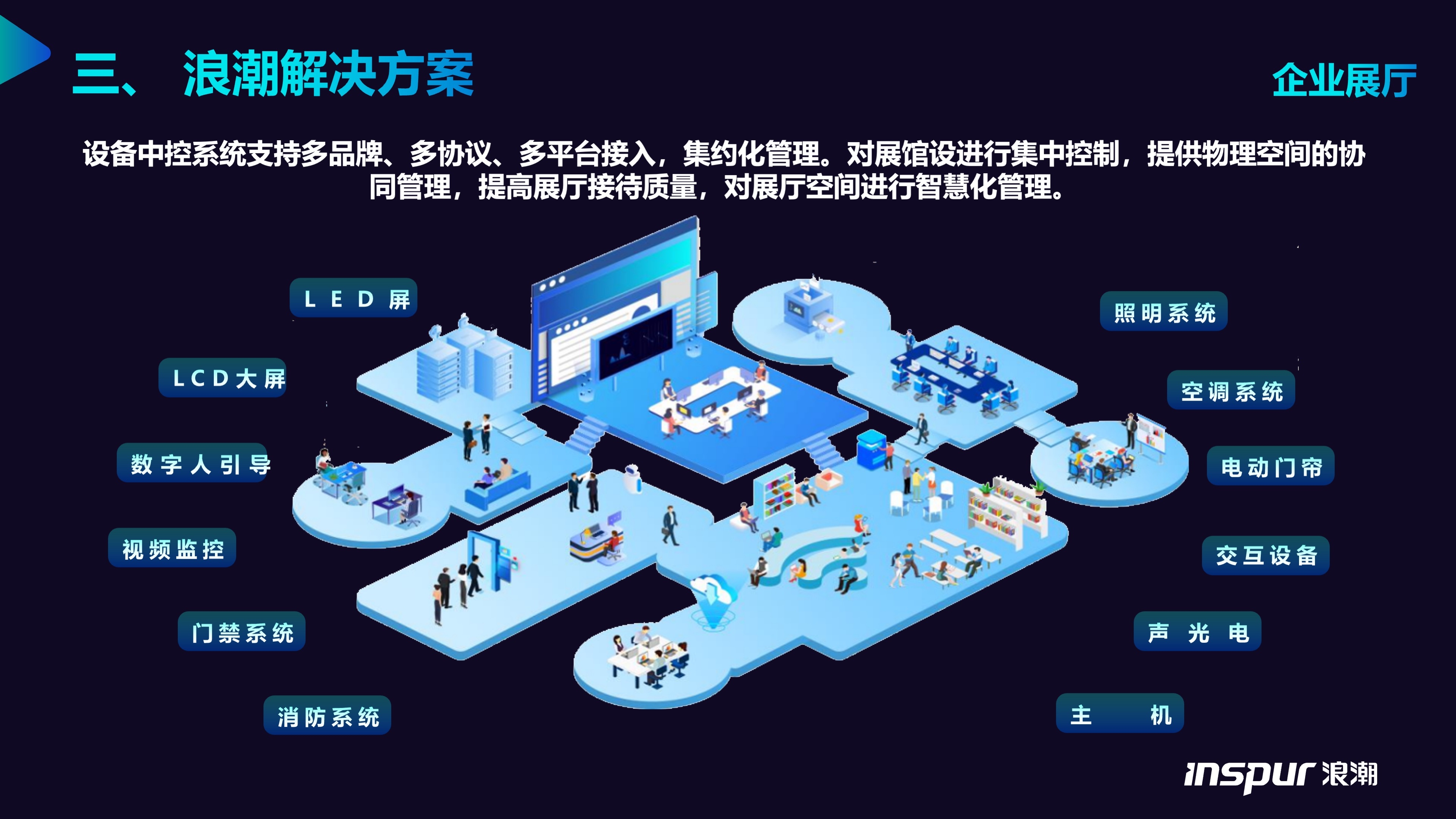 依托于智能终端产品矩阵,深度聚焦并服务于企业展厅、会议室、指挥中心、企业物资管理与商用办公清洁这五大核心场景,提供定制化解决方案。