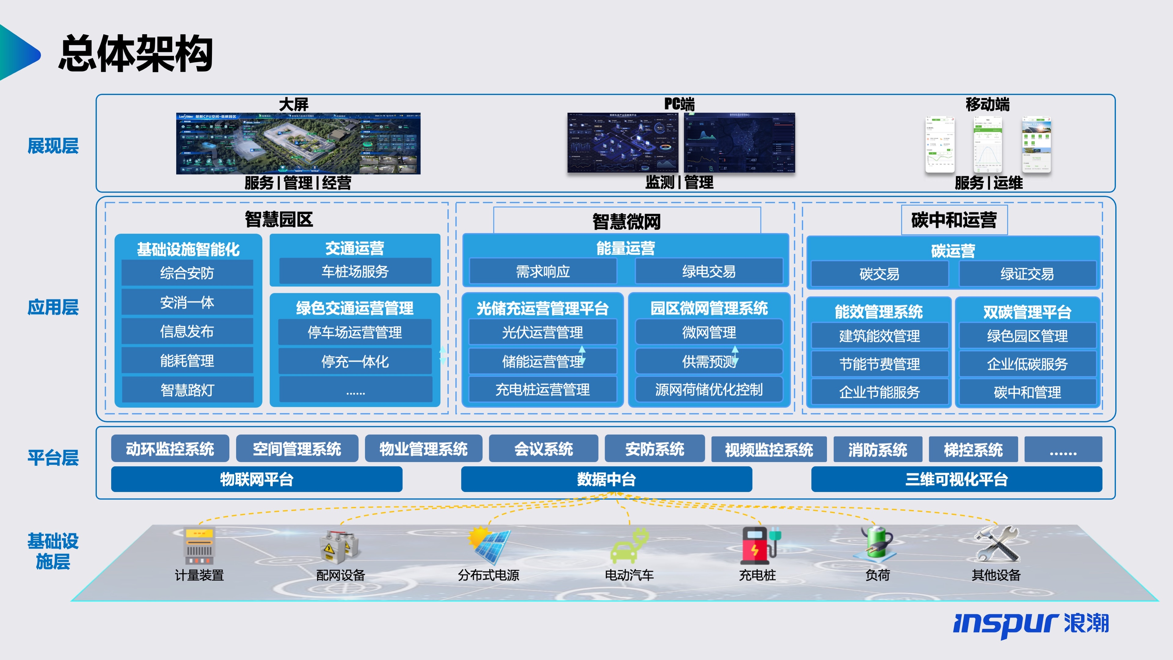 面向特色经济、工业生产等各类产业聚集区,集成管控低碳基础设施(光伏、风能、储能、电动汽车、可控负荷、冷热电联供等),构建 “源网荷储”一体化的能碳管理中心,通过合理规划、动态优化、多能协同实现零碳智慧园区建设目标。