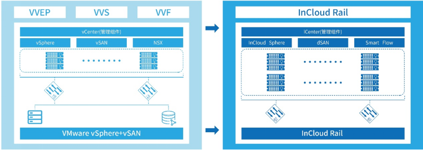浪潮云海InCloudRail超融合系统基于基于“硬件重构+软件定义”架构,具有去耦合、可重构、自动化、整体性、弹性化、高扩展灵活选配等特点,帮助用户快速构建云数据中心,降低TCO和复杂性,并且能够灵活扩展、快速交付。可以有效替代替代VMwareHCI并实现迁移体验与扩展性的双重升级。
