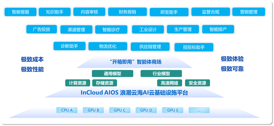 浪潮云海AI云基础设施平台InCloud AIOS是一款面向政企智能化转型的“融合型AI底座”,以“开放兼容、平滑演进、简化运维、极致性能”为核心,解决客户AI落地中面临的“AI建设成本高、异构GPU算力协同难、大模型运维门槛高、性能与安全难平衡”等痛点,为客户提供的纯软或软硬一体化AI私有化解决方案,实现“从传统IT到智能IT”的无缝衔接,让客户低成本、高效率的接入AI能力。